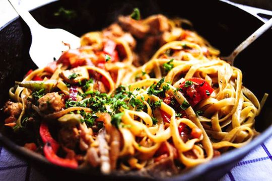Запеченные макароны с овощами